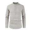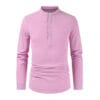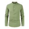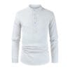 Casual Half Open Shirt Long Sleeve Cotton Hemp Solid