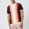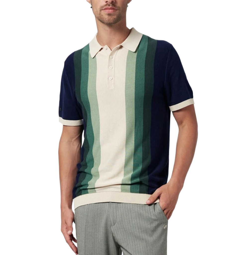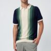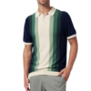 Casual multicolor vertical stripe stand-up collar knitted men's polo shirtCasual multicolor vertical stripe stand-up collar knitted men’s polo shirt