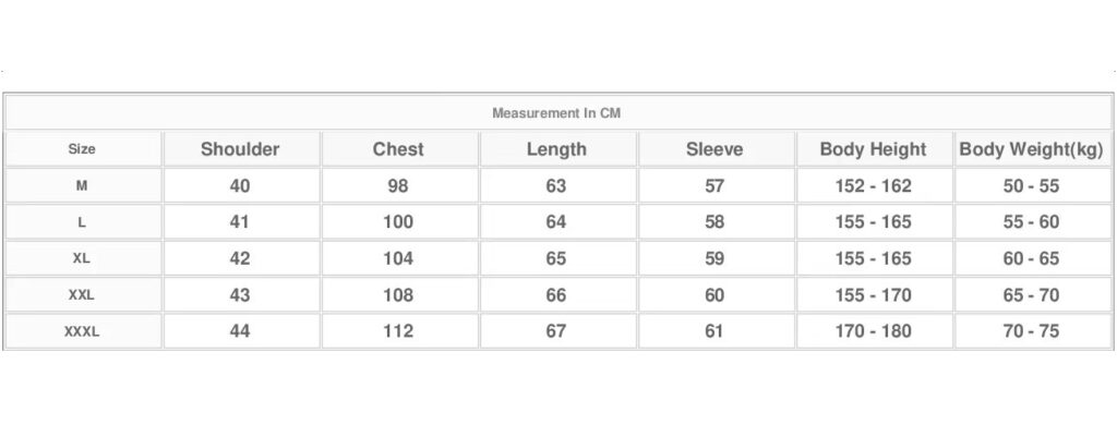 2. If you are not sure about your size. Don’t worry, just let us know your height, weight. We will recommend the right size for you.