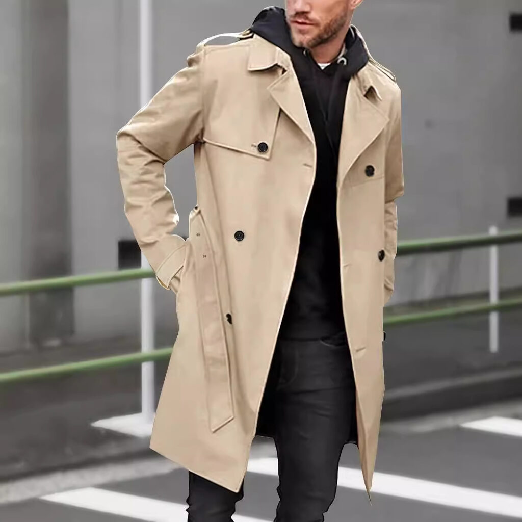 Be the first to review “Men’s Fashion Solid Color Trench Coat with Lapel, Double-Breasted, Belted Casual Jacket”