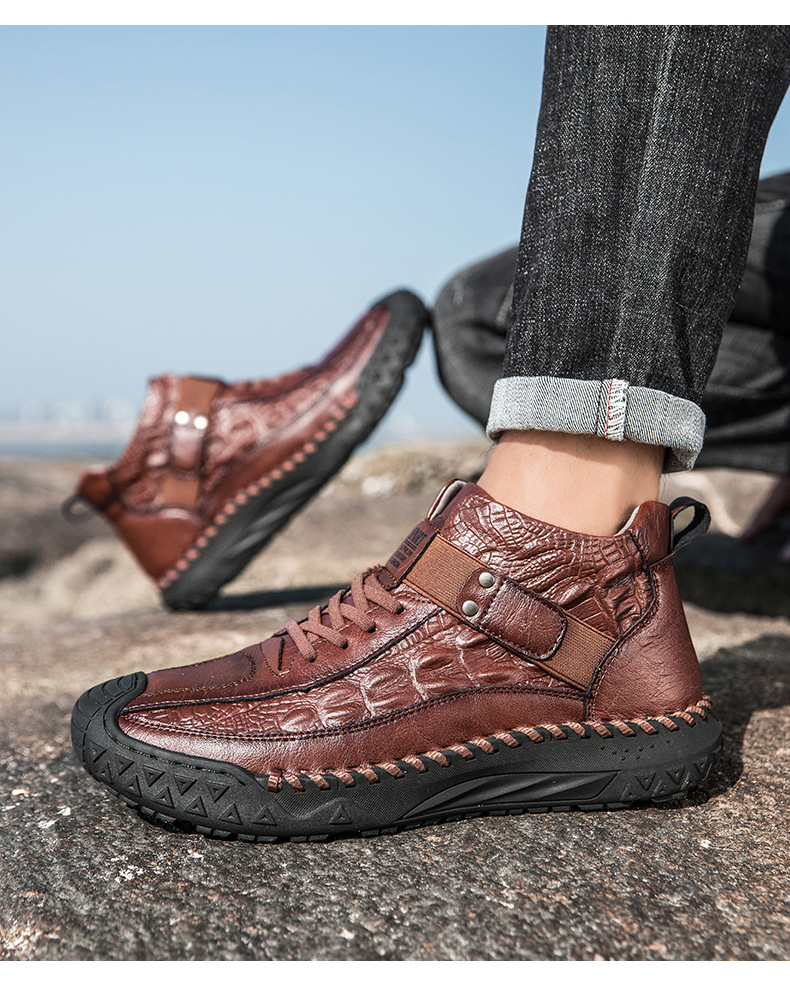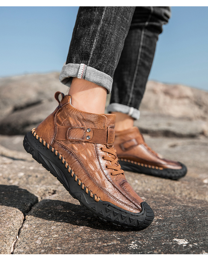 & Free ShippingSpring and Autumn Men’s Leather Boots, Style Boots, Men’s Outdoor Martin Boots, Fashionable Mid-Calf Large-Size Leather Shoes
