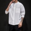 Men's solid color long sleeve stand up collar shirtMen’s solid color long sleeve stand up collar shirt