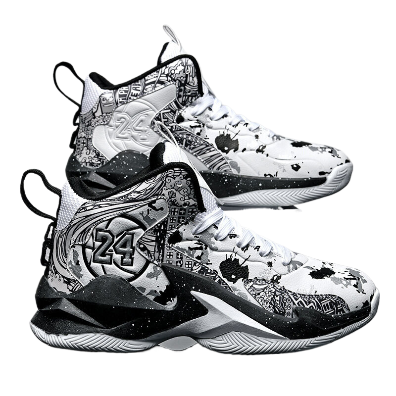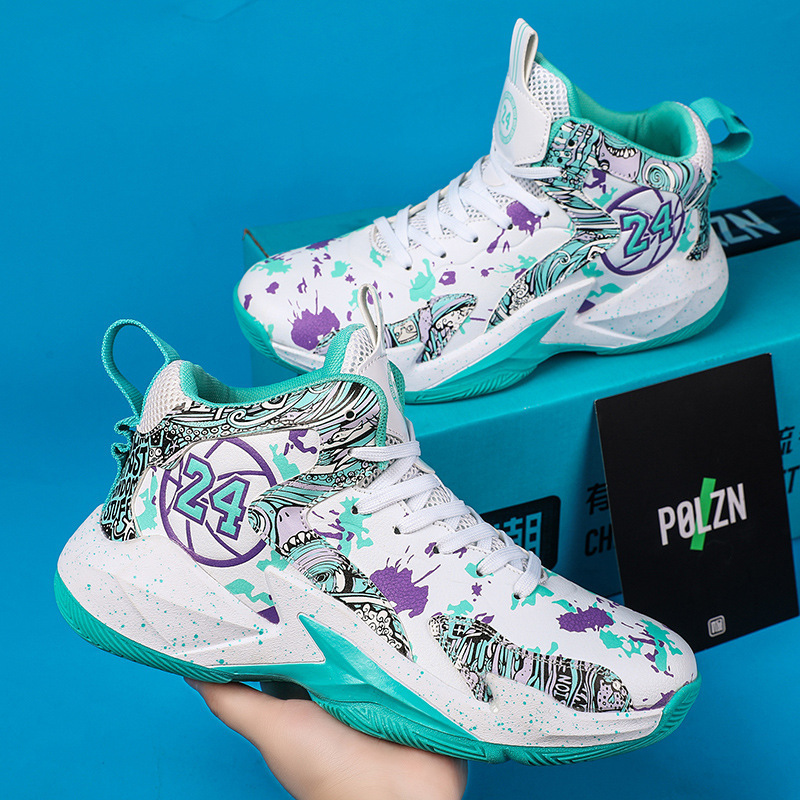 - Features: OthersSole Material: RubberUpper Material: Synthetic leatherThickness: StandardShoe Height: High-topClosure: Front lace-upSuitable Surface: PlasticGender: UnisexPattern: Color-blockOutsole Material: RubberApplicable Scene: Running Sports